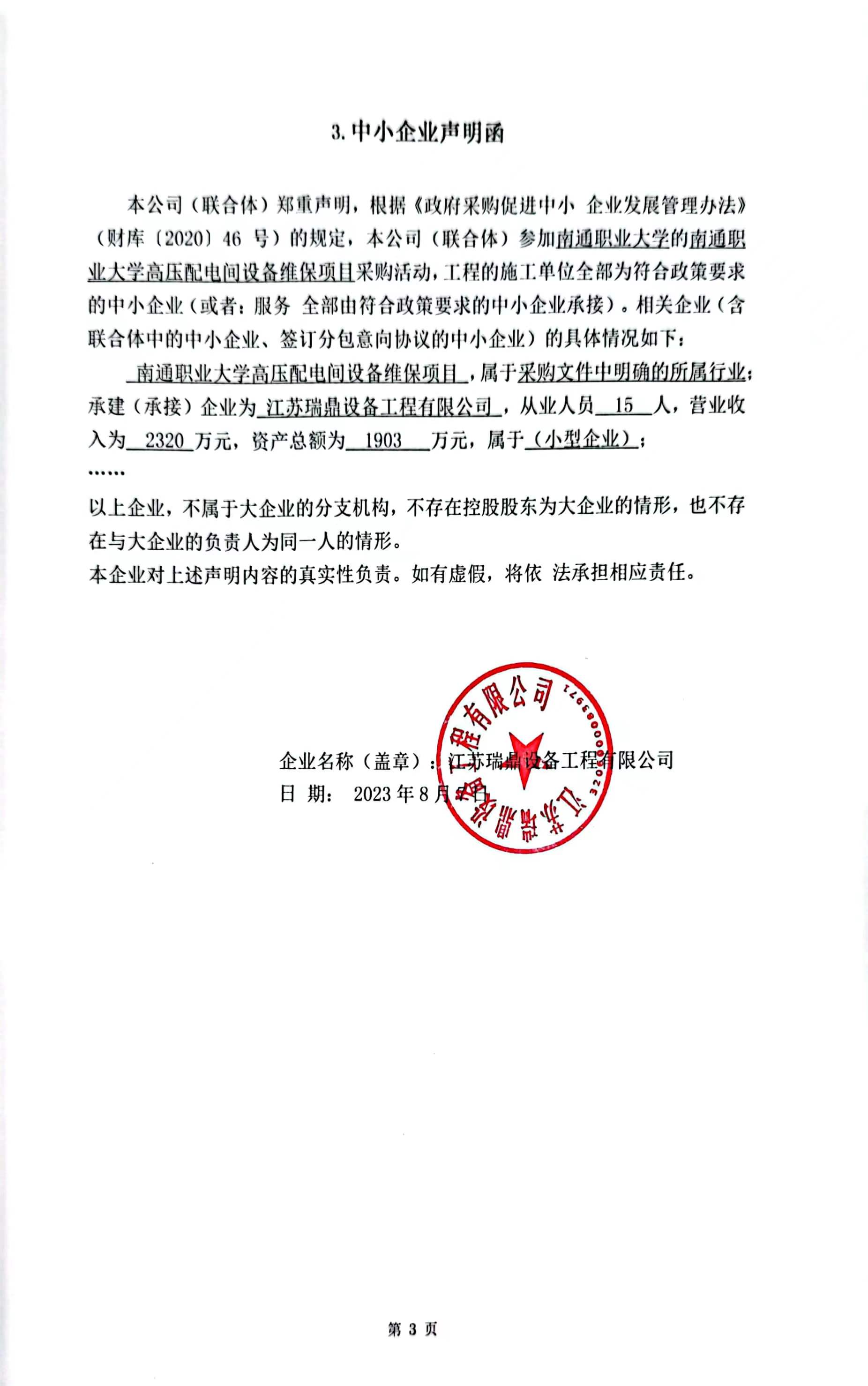 南通职业大学高压配电间设备维保项目 成交结果公告