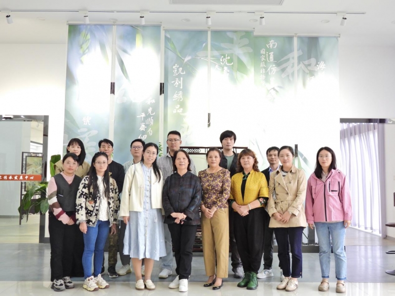 10月19日下午,教师团队前往江苏凯利绣品有限公司进行研学考察,周占贤董事长为研学团进行企业文化介绍。教师们亲身体验了非遗彩锦绣、仿真绣的魅力,同时也深入了解了刺绣产品的市场需求。